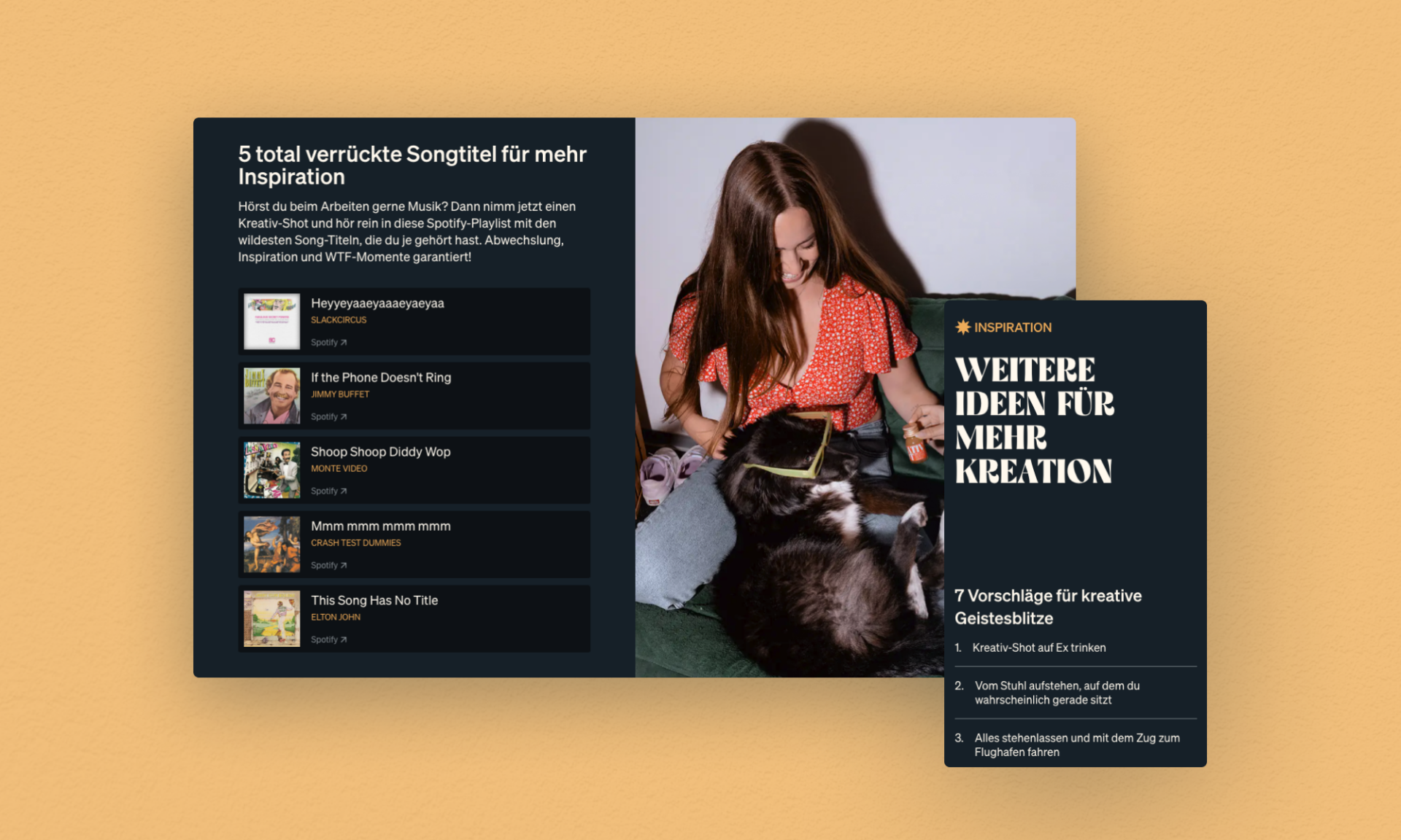 Auf der dazu passenden Landingpage kreativshot.ch, gibt’s auch noch weitere Inspiration in Form von Kreativ-Tipps. Die Shots können dort auch direkt «bestellt» werden – zusammen mit einem gemeinsamen Anstossen im Kernbrand-Team.