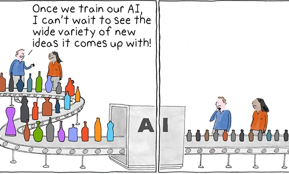 Warum du nicht unreflektiert Chat-GPT und Co. fragen solltest, um neue Ideen und Inhalte zu generieren, wird in diesem Cartoon und dem dazugehörigen Essay eindrücklich dargelegt.