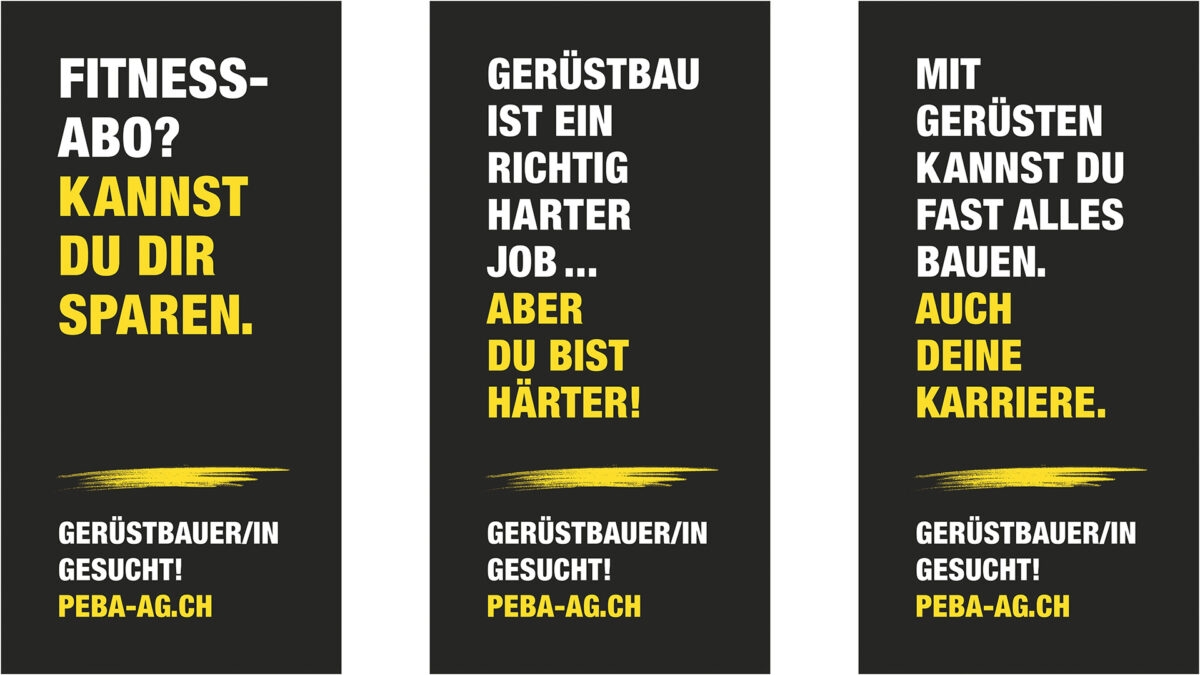 Für ihr Employer Branding haben wir die PEBA unterstützt, so kräftig wie wir es als Werbeagentur-Bürogummis nur können. Wir sind mit auf die Baustellen, haben Interviews geführt, Filme für Social Media gedreht, humorvolle Headlines getextet und Inserate und Megaplakate gestaltet, die flexibel zum Einsatz kommen.