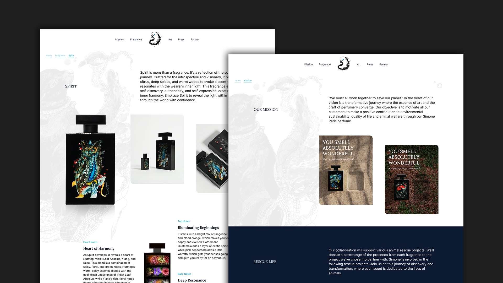 Simone Paris ist eine neue Marke, die Kunst und Tierschutz mit dem Handwerk der Parfümerie verbindet. Die Namensgeberin der Marke ist Simone Eisenbeiss – eine junge Tieraktivistin und Künstlerin aus Stein (AR). Sie gibt ihr Leben dafür, um Tiere aus Kriegsgebieten (Ukraine) zu retten. Da es ihr ein grosses persönliches Anliegen ist, zum Schutz der Umwelt und der Tierwelt beizutragen, wird mit jeder gekauften Simone Paris Parfümflasche eine von vier Partnerorganisationen im Bereich Tierschutz unterstützt.