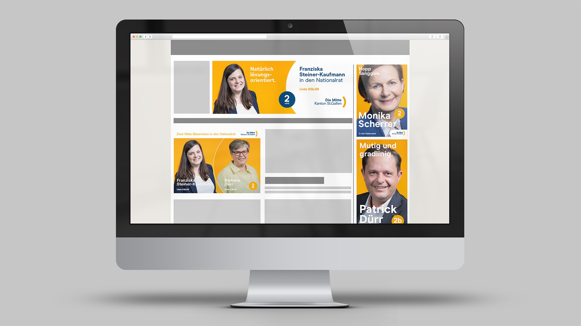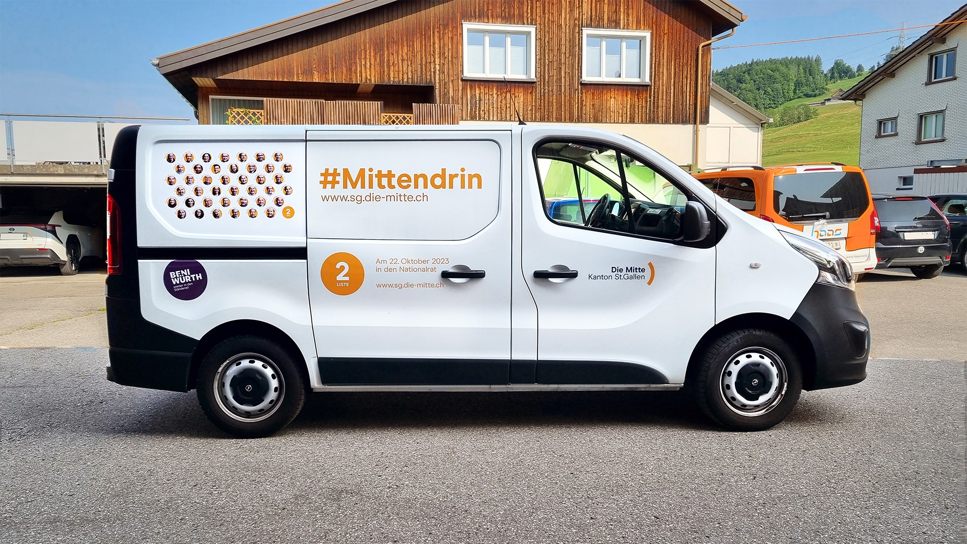 Entstanden ist eine Kampagne, welche die Partei und die über 80 (!) Kandidierenden sichtbar macht. Dies auf allen Kanälen: auf der neuen Website diemitte2023.ch. Mit Videos auf Social Media. In Inseraten, Online-Bannern, Printprodukten, als Digital Out of Home. Bei Messen, im Wahlkampf-Bus unterwegs auf der Strasse und als Plakat in der Nachbarschaft.