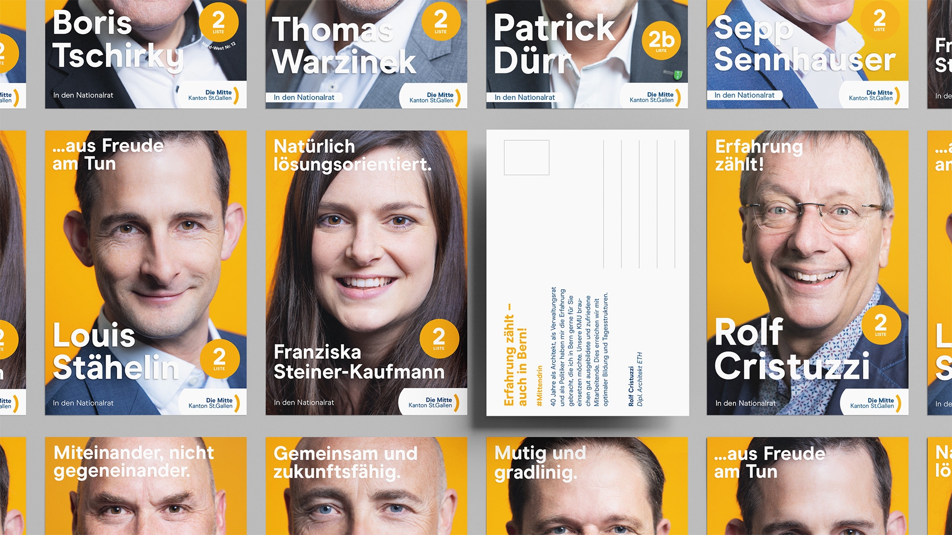 Die Mitte ist mehr als eine Partei. Die Mitte ist eine Haltung. Wo man zuhört, statt laut zu brüllen. Weder links noch rechts steht, sondern für Zusammenhalt. Eine Haltung, die wir bei Kernbrand voll unterstützen. Darum haben wir uns nach einem Pitch-Gewinn vollumfänglich für die Wahlkampagne der Mitte Kanton St.Gallen eingesetzt.